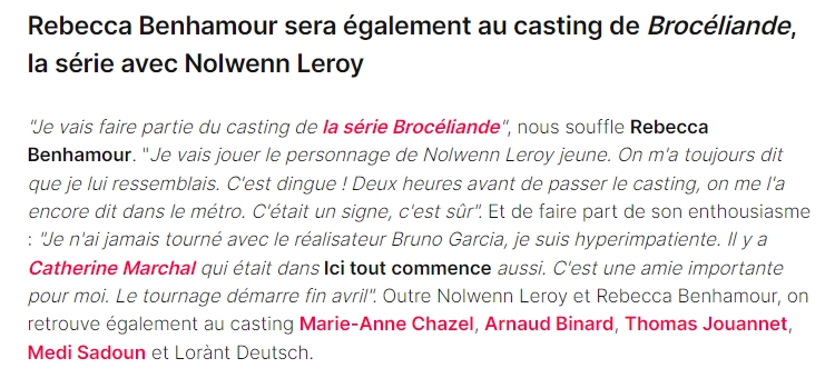 Vous allez jouer dans la prochaine série télévisée de TF1 Brocéliande aux côtés de Nolwenn Leroy.